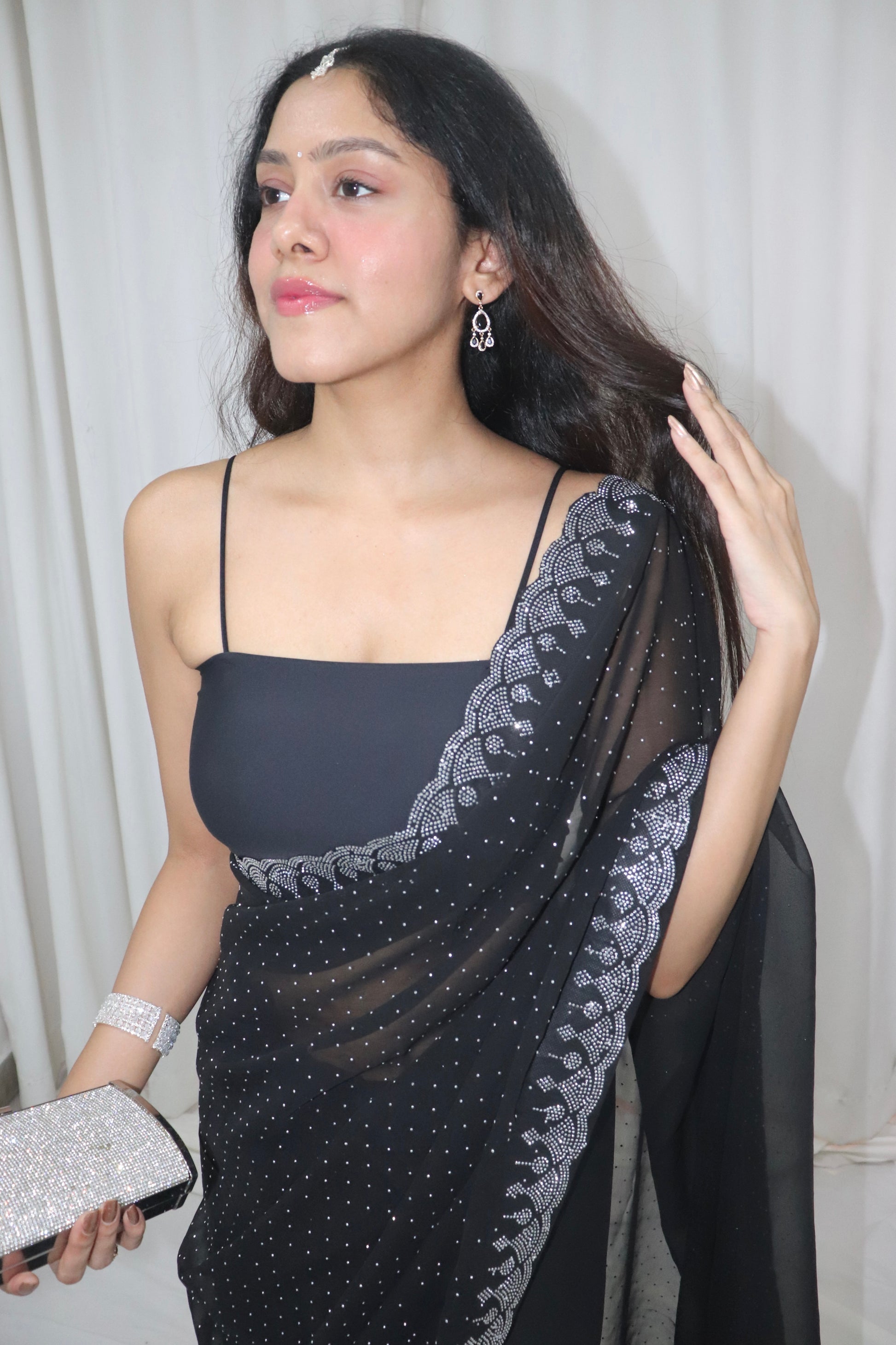 Chandni Saree- black georgette embellished saree with strappy blouse