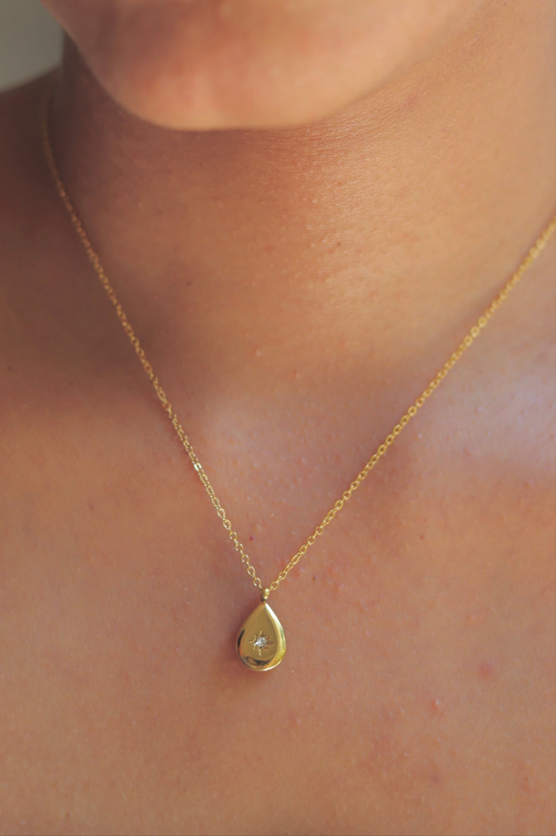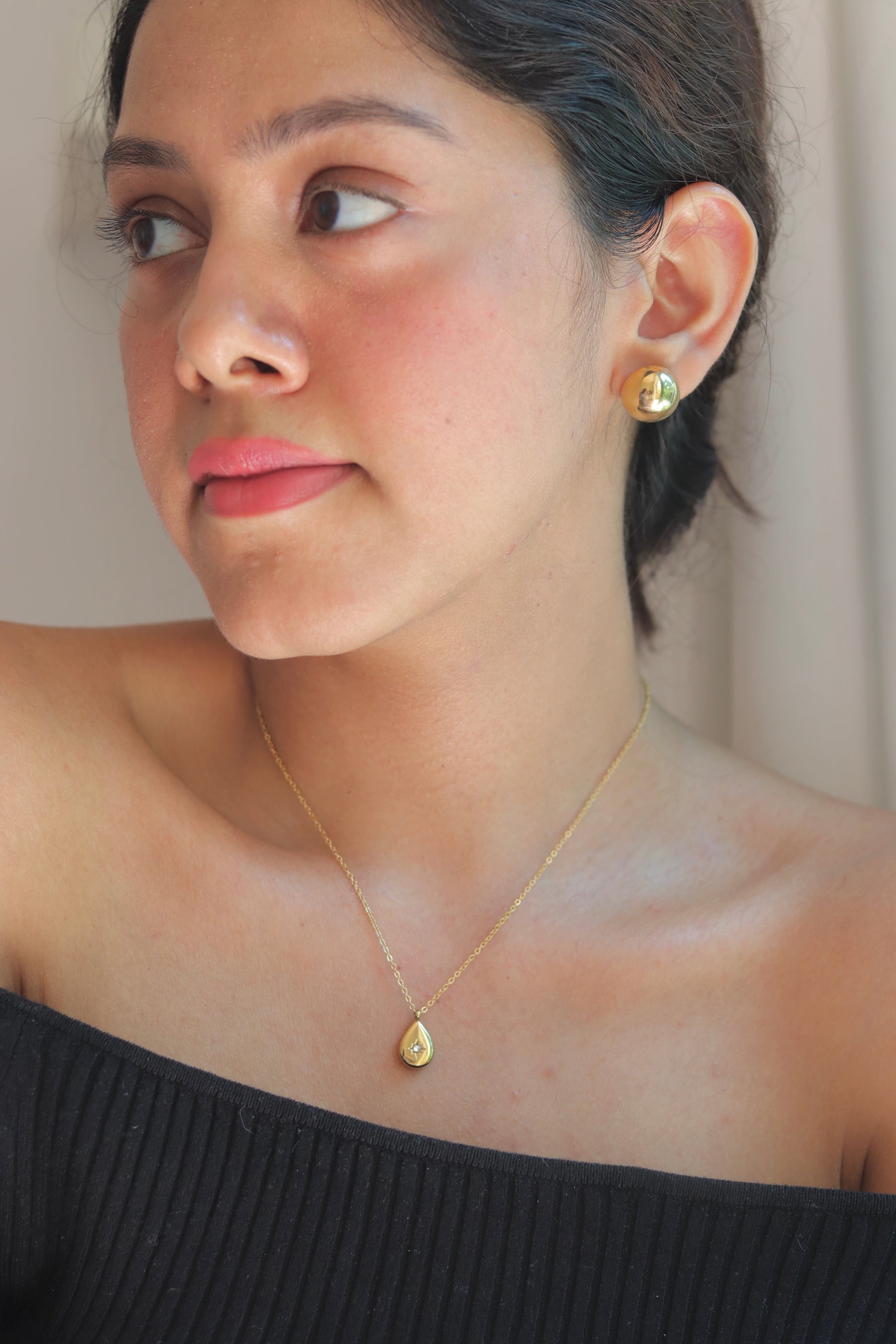 Gold Teardrop Stone Studded Necklace